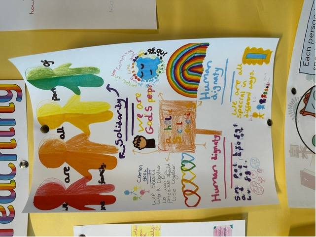 Seek the Truth: This theme encourages us to seek the truth in all things and to work to create a fair and just world where everyone's voice is heard and all people have access to what they need . Within this value the children learn about the CST principles of Solidarity, The Common Good and Option for the Poor and Vulnerable